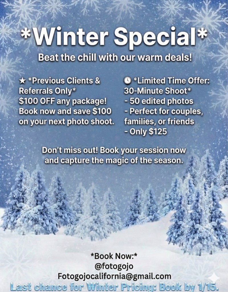 I am here to tailor a portrait session package that can work with most budgets so feel free to contact me with your ideas and needs!